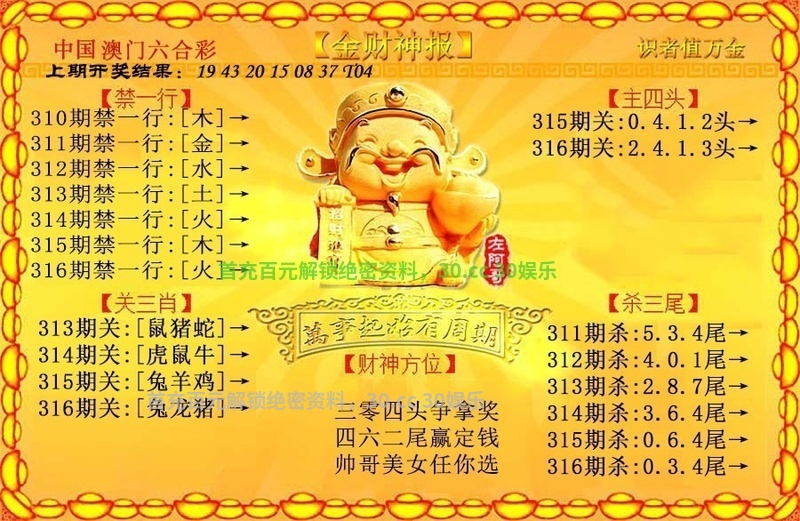 315期:☀吉凶中特☀【凶丑】开:虎04中